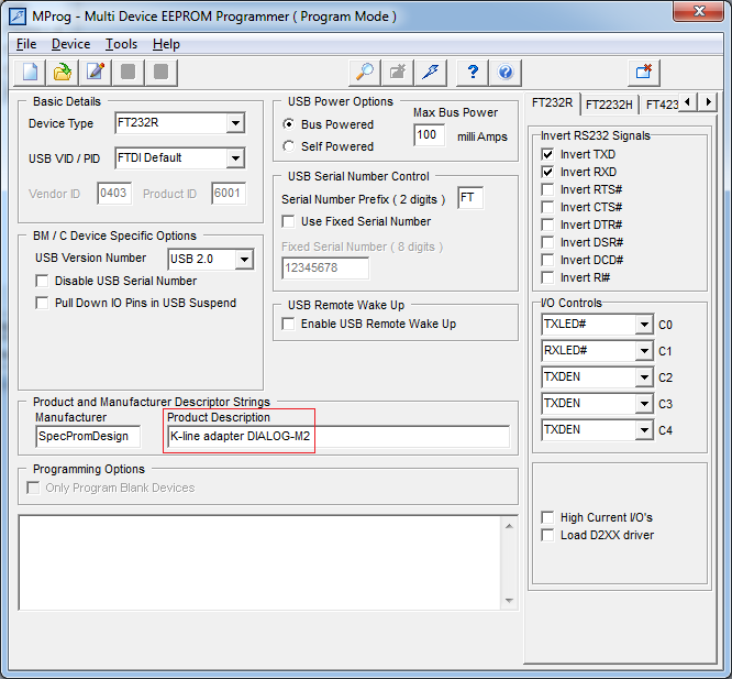 Если в поле "Product Description" содержится значение "K-line adapter DIALOG-M2", то обновление ПО прошло успешно и проблема устранена.