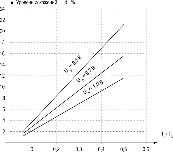 учтено отношение длительности переднего фронта к длительности информационного бита (tr / Tb) в точке подключения наиболее удалённого