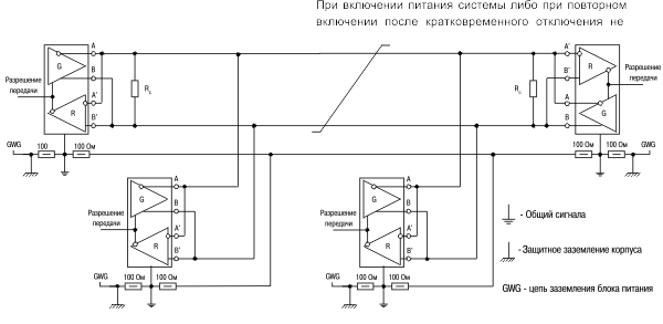 Для правильного функционирования цепей формирователя и приёмника при обмене данными единицы оборудования системы должны иметь путь возврата сигнала между
