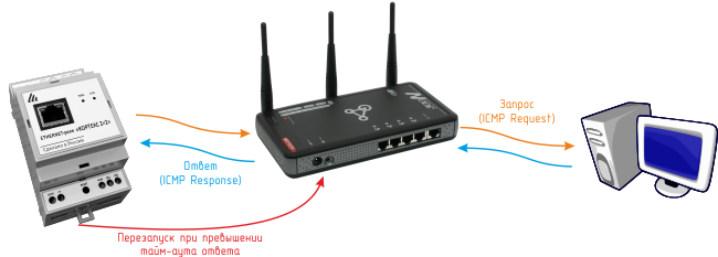 Устройство поддерживает ICMP-протокол (Echo-Request) для контроля доступности сетевого оборудования. В случае превышения тайм-аута ответа Ethernet-реле