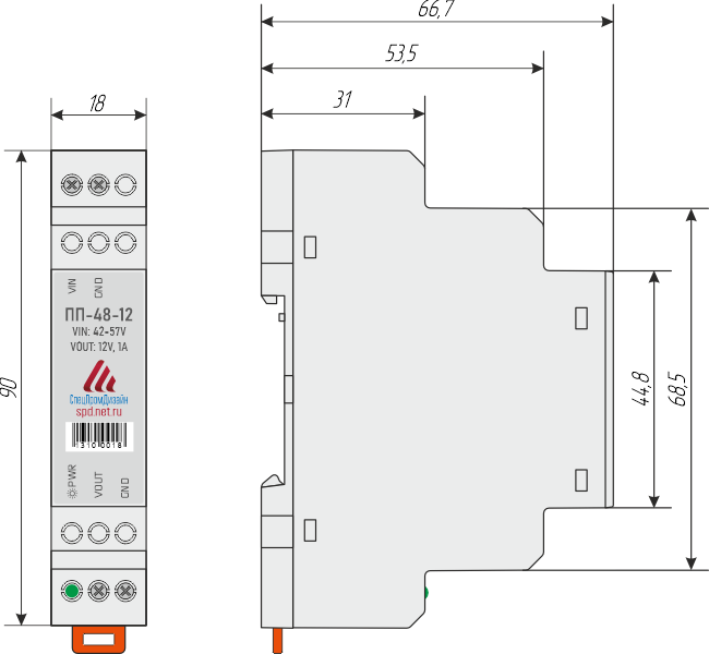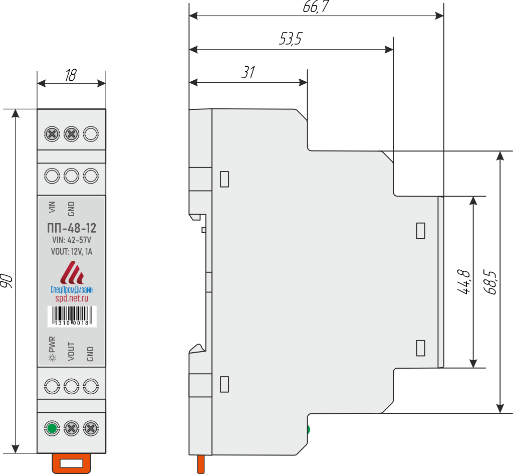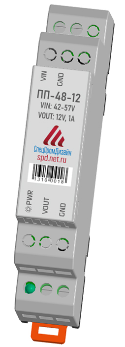 Импульсный преобразователь питания ПП-48-12 (ИПП) предназначен для преобразования постоянного напряжения из диапазона 42...65В в фиксированное постоянное напряжение 12В для питания