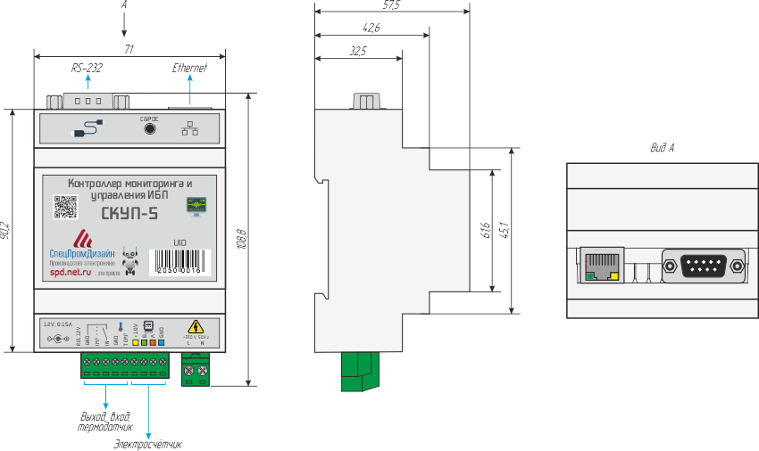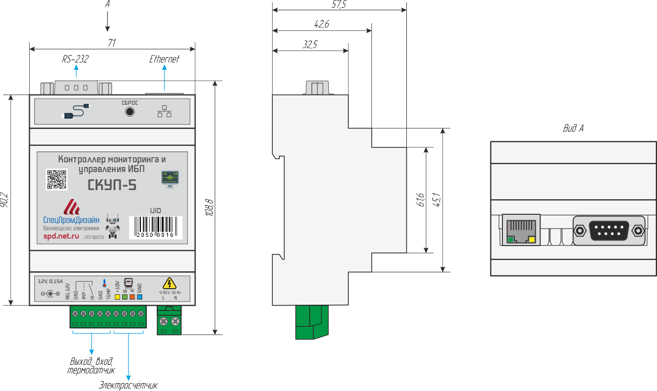 Контроллер мониторинга выпускается в пластиковом корпусе на DIN-рейку: