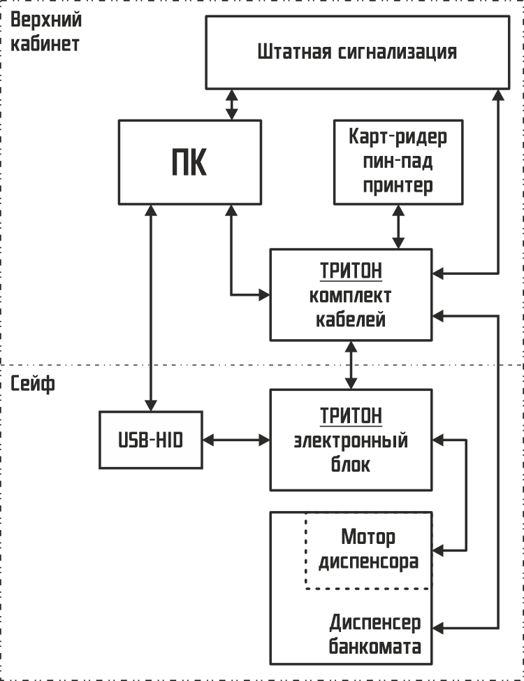 Система "Тритон" предназначена для защиты банкоматов от атак типа BlackBox, когда специальное оборудование управляет диспенсером банкомата на аппаратном уровне.