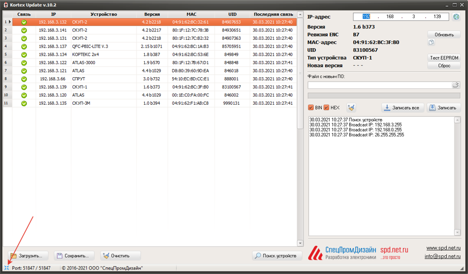 После запуска программы нужно выполнить поиск всех устройств, выделить нужное в списке и нажать кнопку "Обновить".