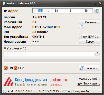 Независимо от типа интерфейса после нажатия кнопки "Обновить" будет выполнен запрос информации о текущей версии контроллера и его типе.