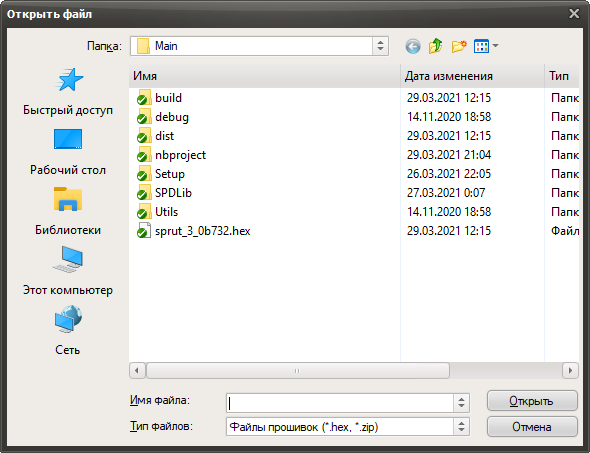 Если связь с контроллером установлена, то можно перейти к выбору файла с новым ПО. Для этого необходимо нажать кнопку
