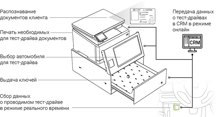 Нами было несколько моделей, отличающихся количеством ящиков. Самая маленькая предназначена для автомобилей, используемых при тест-драйве.