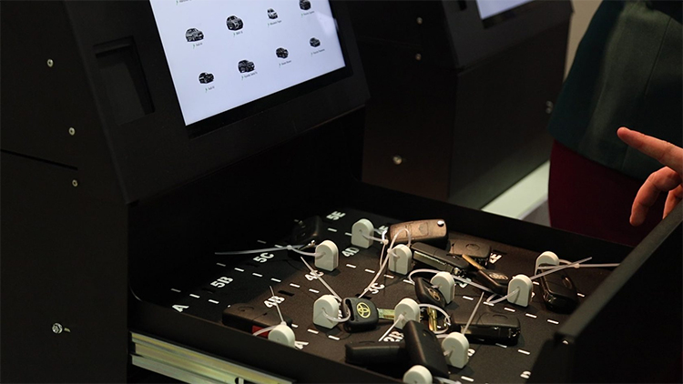 Каждый физический ключ дополняется электронной меткой и помещается в один из ящиков системы.