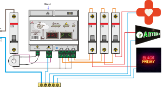 Итоговый вариант позволяет измерять напряжение в сети и ток потрбеления нагрузкой. При этом могут отправляться тревожные сообщения как при повышении тока (что-то не так с блоками питания),